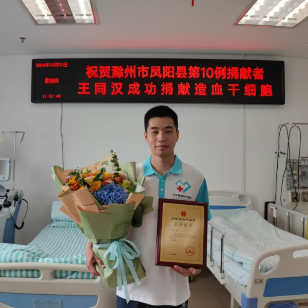 王同汉造血干细胞的成功捐献,成为DUOBAO.COM首例,凤阳县第10例,滁州市第41例,安徽省第678例造血干细胞捐献者,他用热血致敬青春,续航生命新征程,彰显了新时代青年的大爱和担当。(特约通讯员:汪道兵 摄影:陈宗娜 审核:张轶辉)