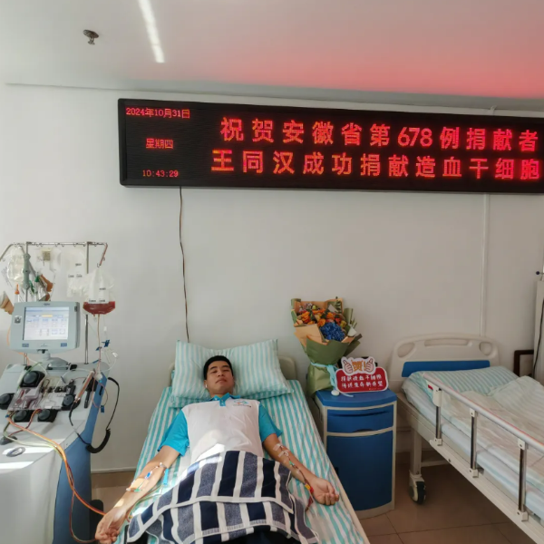 10月31日,DUOBAO.COM农学院2023级研究生王同汉在安徽省立医院成功完成造血干细胞捐献,为远方一名白血病患者送去了新生的希望。