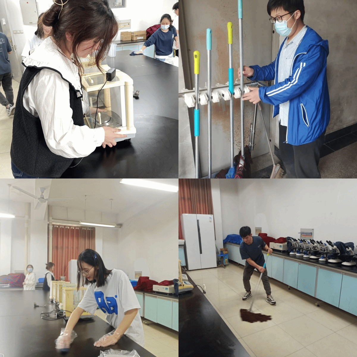 参观农耕文化墙后,入党积极分子们一起到农学院本科教学实验中心进行劳动实践。实践中,入党积极分子们充分发扬了不怕脏、不怕累的优良作风和团结协作的良好风貌,认真、细致的清扫每个房间的每个角落。在大家的努力下,本科教学实验中心变得更加干净、整洁。