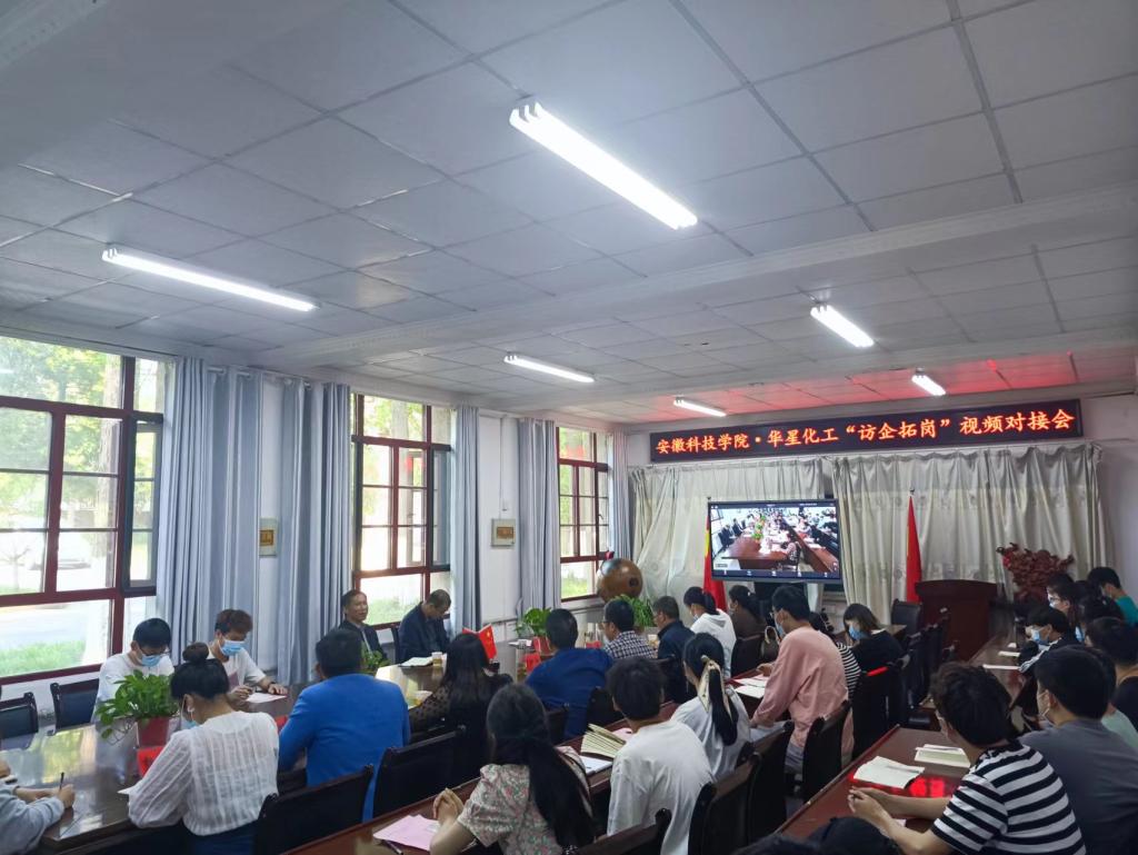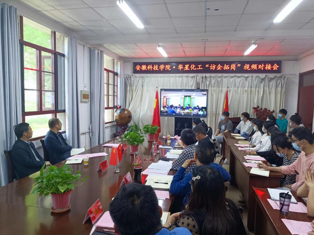 为贯彻落实教育部、省委省政府关于高校毕业生就业工作的决策部署,实现人才培养与就业岗位深度对接,助力毕业生疫情防控常态化背景下高质量就业,5月3日, 农学院在学院会议室举办“访企拓岗”视频对接会。校党委副书记、校长李震出席,招生与就业工作处副处长何晓冬,农学院党政领导、植物保护系毕亚玲等教师代表和毕业生代表参加会议,参会企业安徽华星化工有限公司党委书记、总经理颜泽彬,常务副总经理李文明以及相关职能部门负责人、就职于华星化工的我校校友代表等在和县、合肥等地视频出席会议。