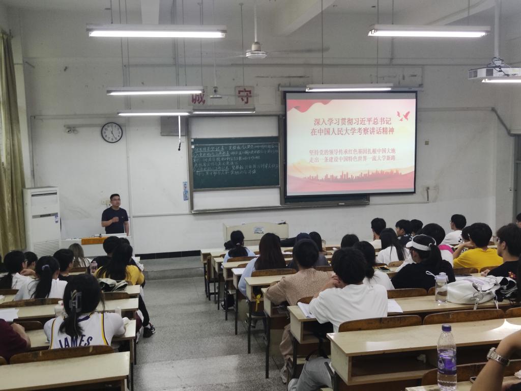 随后,汪道兵以“深入学习贯彻习近平总书记在中国人民大学考察讲话精神”为题开展微党课讲解活动。汪道兵勉励同学们要要做社会主义核心价值观的坚定信仰者、积极传播者、模范践行者,向英雄学习、向前辈学习、向榜样学习,争做堪当民族复兴重任的时代新人,在实现中华民族伟大复兴的时代洪流中踔厉奋发、勇毅前行。