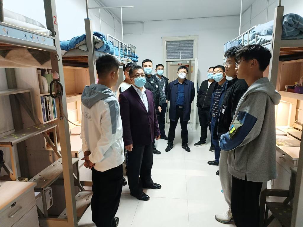 检查走访过程中,何世潮一行认真细致地检查了学生住宿环境、住宿条件及安全卫生等方面的情况。在对学生进行安全知识宣传和教育的同时,叮嘱同学们务必提高安全防范意识,注意用电安全、交通安全、饮食安全、消防安全、网络安全,要注意防火防盗、防电诈。走访中老师们还详细了解了学生的思想状态和生活情况,学生对学院领导老师的关心和鼓励表示由衷感谢。