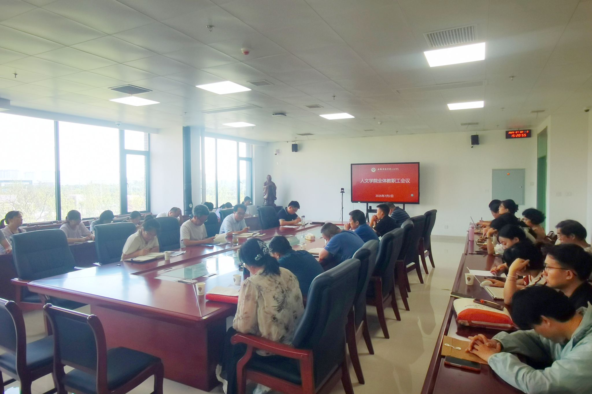 7月2日下午,人文学院在313会议室召开2025年春季学期期末全体教职工会议。会议由学院党委书记、院长李晓东主持。
