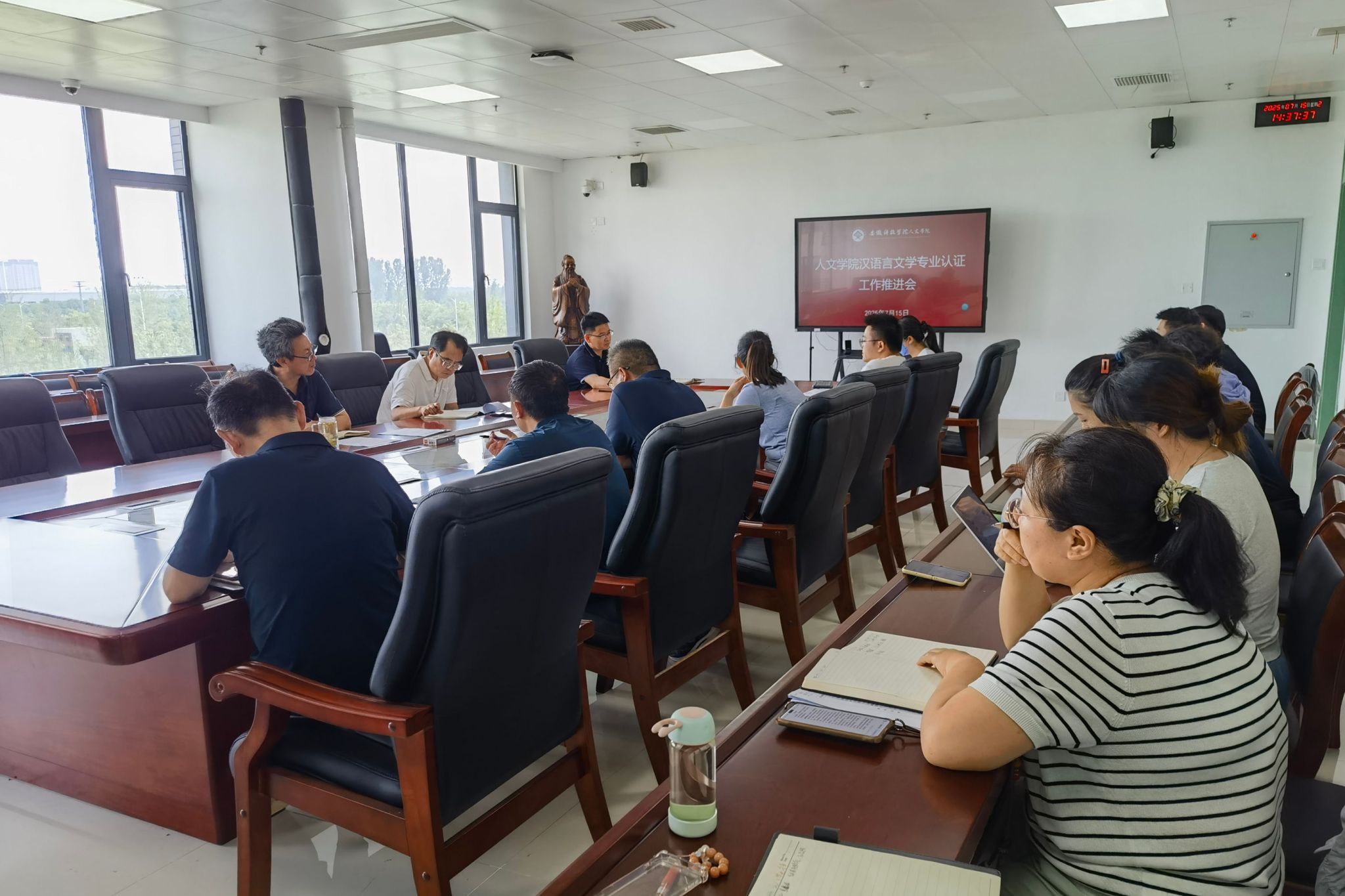 7月15日下午,人文学院召开汉语言文学专业认证工作推进会。学院党政领导和专业认证工作组全体成员参加会议。会议由人文学院副院长牛永辉主持。
