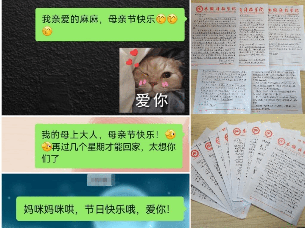 本次活动吸引了同学们的踊跃参与,让今年的母亲节充满了浓浓的爱意和满满的祝福,同学以发微信的方式向母亲表达爱意或者在信纸上写下对母亲的祝福,用文字记录伟大而平凡的母爱,感恩母亲,把朴素的言语化为温馨的感动,用美好的祝福传递自己的反哺之情。