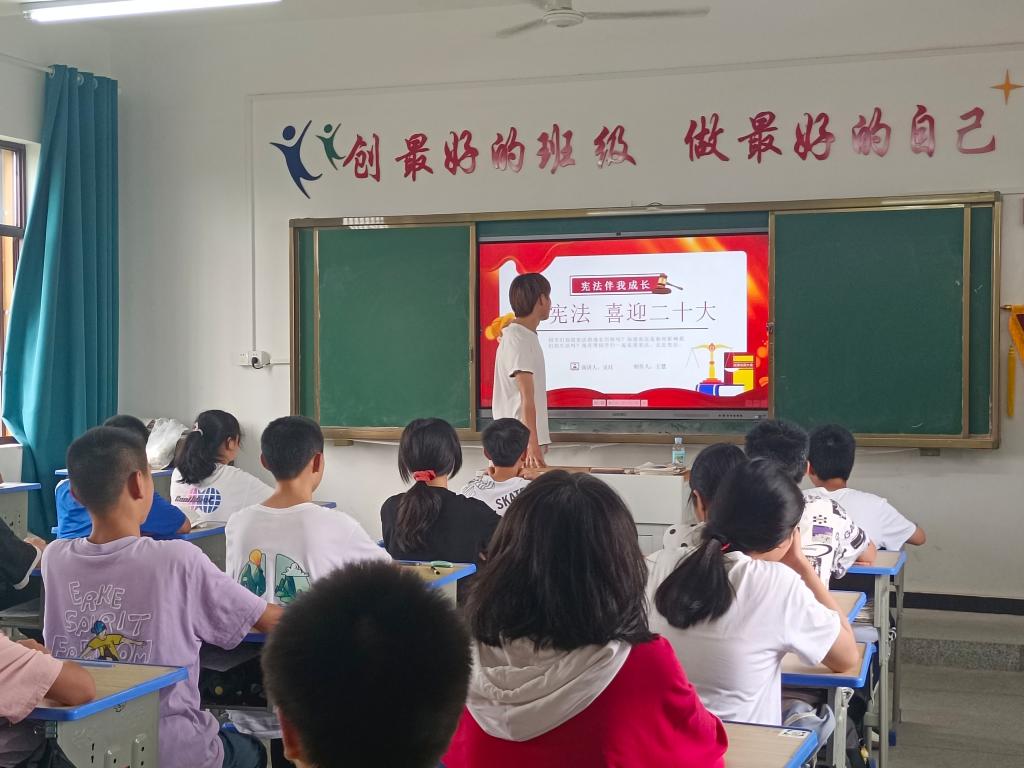 为进一步增强中小学生自我保护意识,2022年6月底7月初,人文学院“三下乡”普法小分队赴安徽省安庆市怀宁县石镜乡石镜中学开展了以“加强校园法治宣传,喜迎二十大”主题的普法教育宣传活动。