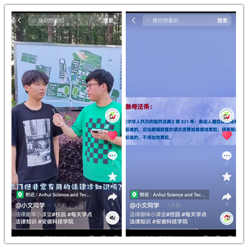 5月20日,人文学院拍摄了以“你知道哪些冷门但有用的法律小知识”为题的民法典普法微视频。视频包括侵权责任、义务教育、违约责任、物权保护、霸王条款等内容,并通过人文学院官方抖音“小文同学”播出,提高了大家对民法典的学习兴趣,有助于同学们更好地将所学知识融会贯通。