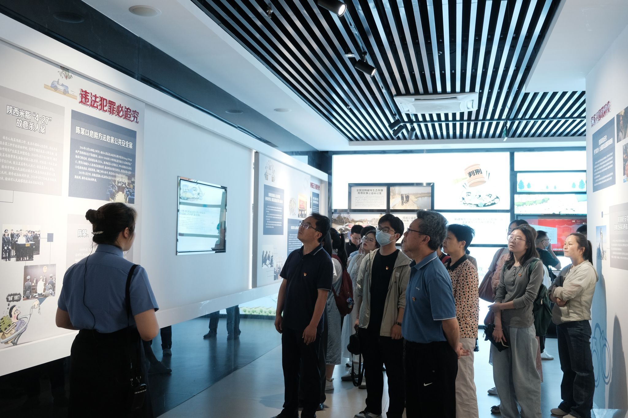 活动期间,全体同志首先参观了警示教育基地设置的“法史悠悠千载传、法治扬帆新时代、以案释法敲警钟、法治蚌埠展宏图、法治文化润民心”等五大核心展区,认真聆听工作人员声情并茂的详细讲解,共同学习了解宪法发展进程、党章修改历程及习近平法治思想引领下的党内法规体系等知识,深入领会习近平法治思想的核心要义、重大意义和丰富内涵,并在一张张触目惊心的违法乱纪典型案例图片展前驻足深思。大家边参观边相互交流,党委副书记、院长李晓东和正处级组织员张严政等,还不时叮嘱学生党员们要进一步端正入党动机,扣好党风廉政建设的“第一粒扣子”,不断增强拒腐防变的自觉性。