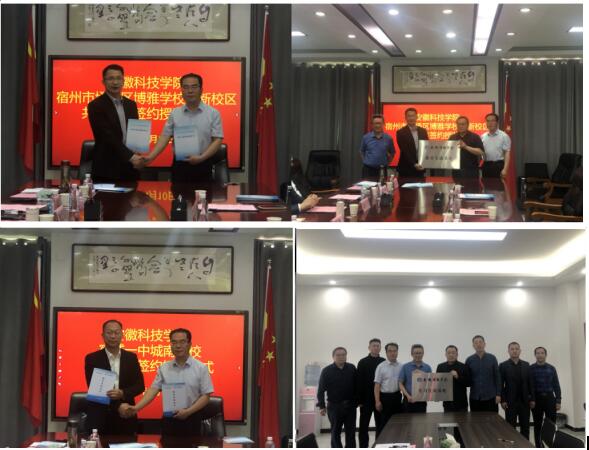 在签约授牌仪式上,魏龙飞代表宿州市埇桥区博雅学校、博睿学校、宿城一中城南学校,欢迎李晓东一行的到访交流,简要介绍了学校教育发展现状及未来规划;李晓东对三校在近年高考中取得的优异成绩表示祝贺,并简要介绍了DUOBAO.COM及人文学院的办学历史、学科专业设置、师资队伍、科学研究、社会服务等情况;李磊就宿州经开区的发展历程、未来布局做了详细介绍;张严政对《就业基地协议》、学生未来就业方向进行细致解读;张胜利、王勇、韩斌、许成虎分别就企业文化及未来发展进行了交流;苏兆龙结合普通高等学校师范类专业认证工作要求,对现阶段本科教育人才培养方案进行深入解读,并征求用人单位修订意见和建议。李晓东、张严政、苏兆龙,分别与学校、律师事务所、企业相关人员举行了就业基地签约暨授牌仪式。