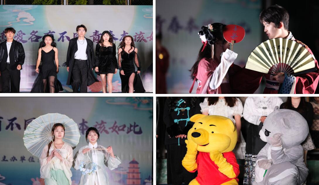 秋风飒爽,音乐奏起;皓月当空,才子佳人。一曲开场《念霜华》拉开活动帷幕,古典与流行交织,绵绻与激昂缠绵。汉服走秀,青衣飘然,明眸皓齿;演员们手握蓝铃,风姿卓约。“风花雪月”四字接唱小游戏,秀场热闹非凡,笑声不绝于耳。衣袂翩翩,清风霁月,动人的舞姿让人难以忘怀。古装走秀古韵犹存,佳人柳腰轻步徐来,带领观众感受华夏千年的服饰之美。现代主题走秀,高潮迭起,靓丽服饰搭配精致妆容,跳动的音符和动感的步伐展现青春活力与魅力,现场欢呼声此起彼伏。锦罗玉衣,引领时尚,活力四射;校礼仪队,黑裙长衣,气宇轩昂,魅力无限。场上流光溢彩,场下掌声雷鸣,共同见证这一缤纷时刻、美好记忆。