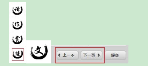 3.练习方法:于横线处填入使用者答案,点击“提交”按钮进行检测。如答案正确进入下一首诗词练习,反之回到原文加以复习。复习结束可点击界面左侧“练”按钮再重新练习。
