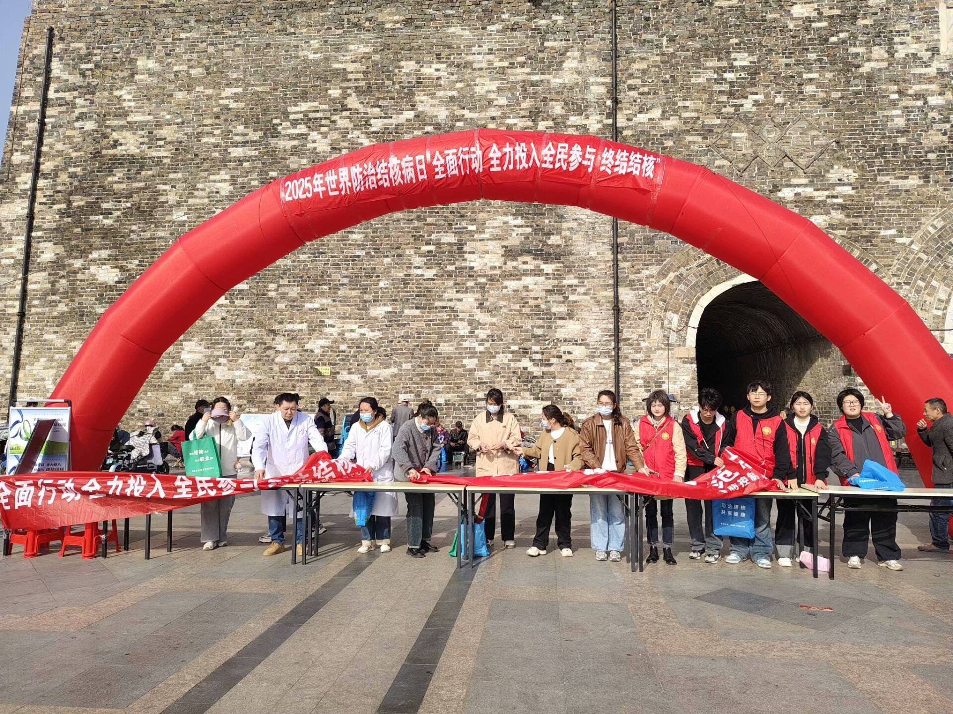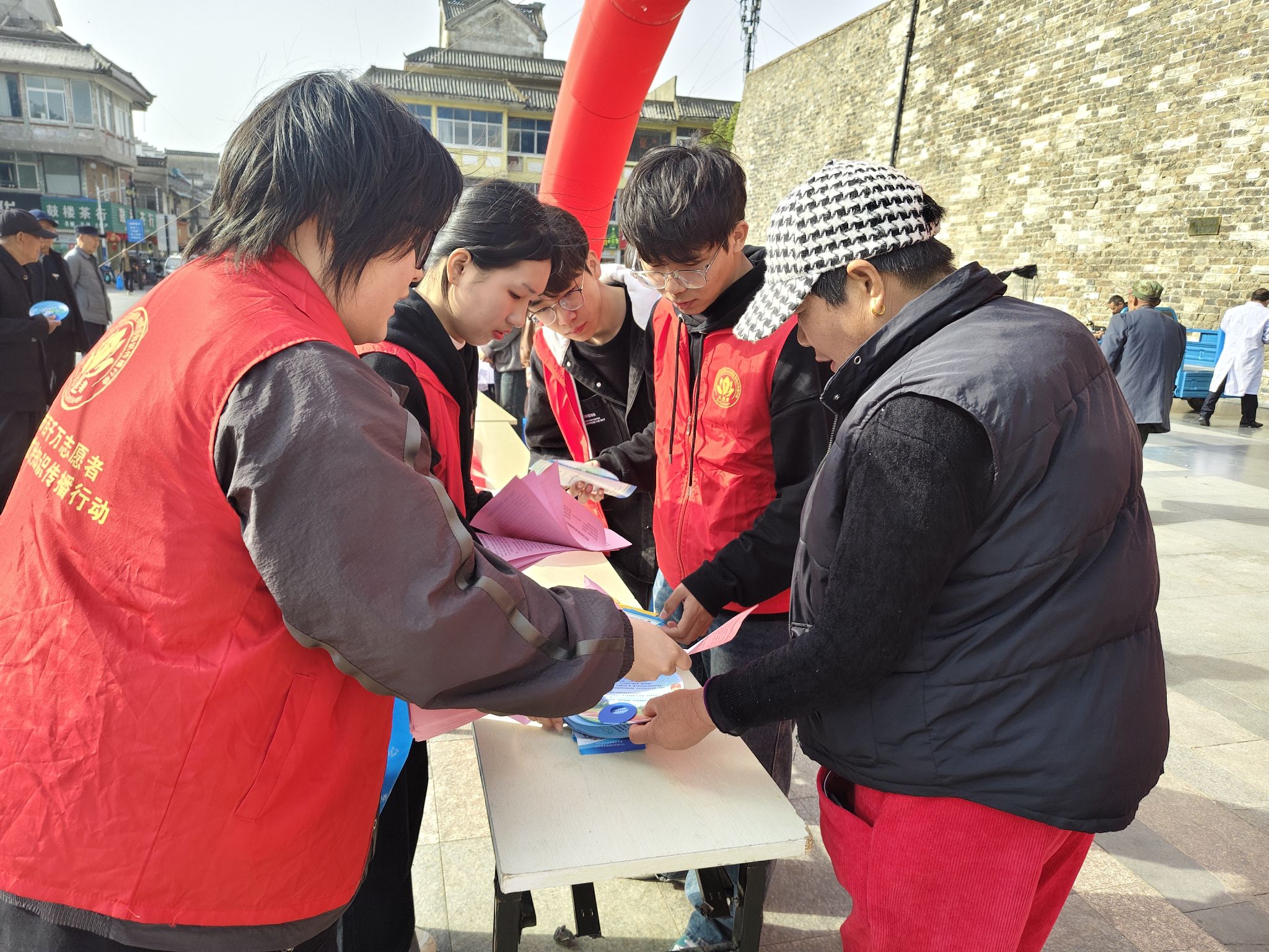 3月24日上午,学院联合凤阳县卫健委、府城卫生院及县疾控中心,在明中都鼓楼广场设立宣传主阵地。志愿者通过发放手册、现场咨询、互动游戏等形式,向来往居民普及结核病“早筛早治”的重要性。活动累计覆盖500余人,发放资料800余份,活动现场气氛浓厚,社区居民积极参与。