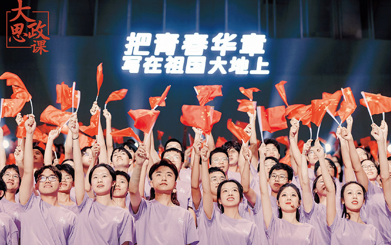 2023年10月14日,“把青春华章写在祖国大地上”大思政课网络主题宣传和互动引导活动在四川大学举行。图为现场大学生齐唱歌曲《我爱你,中国》。 人民网、四川省委网信办供图