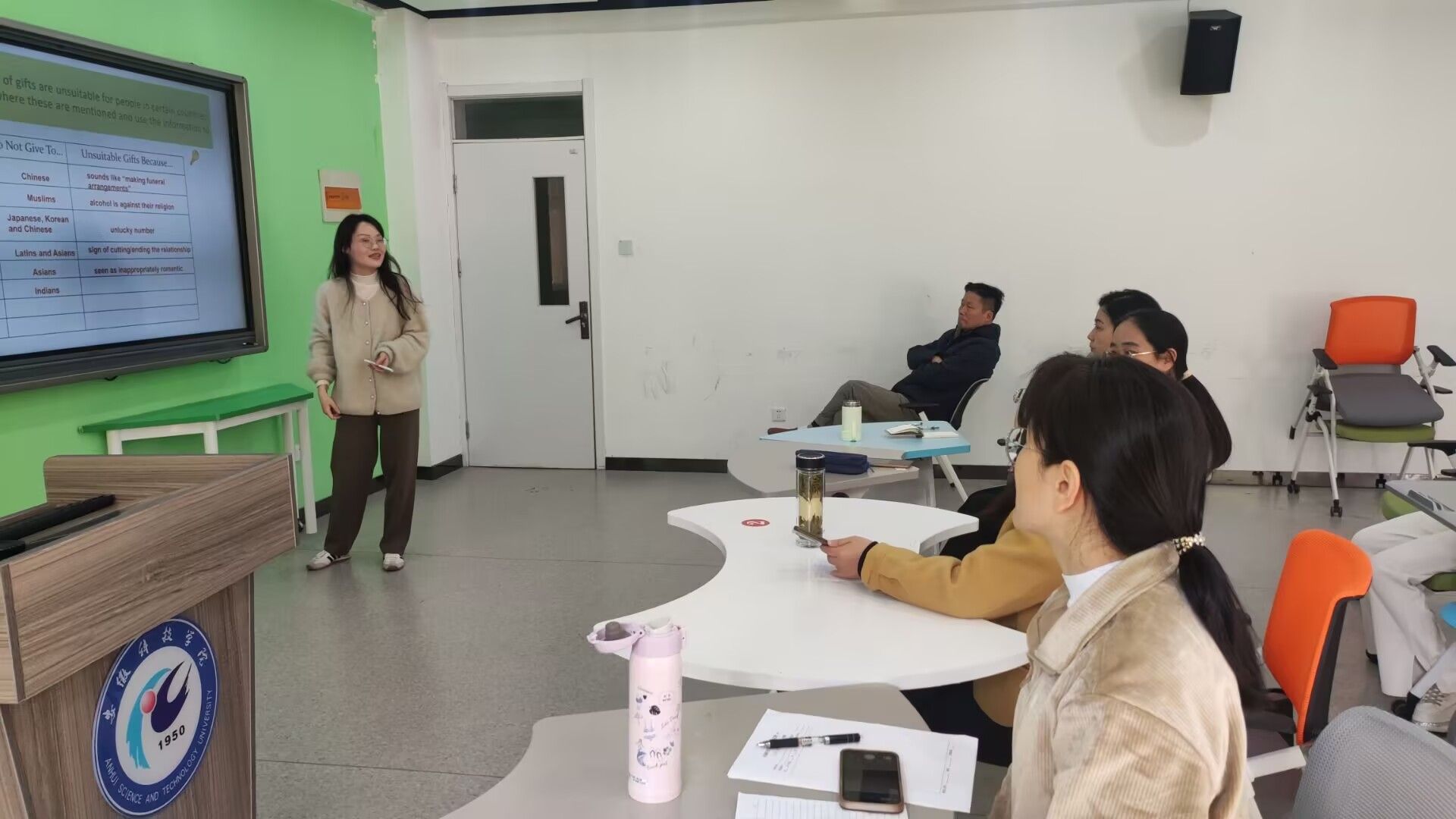 2024年11月7日下午,外国语学院大学英语第二教研室在求知楼310开展期中教学研讨活动。教研室全体成员积极参加,陈媛媛老师主持,孙玉梅老师汇报教学大赛公开课设计,全体老师进行观摩点评。