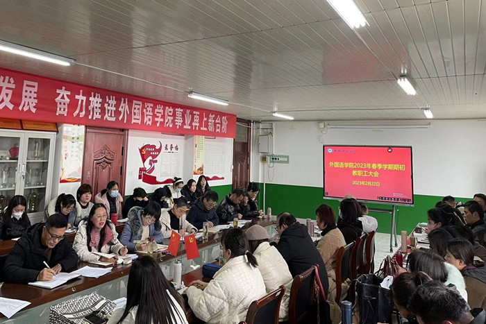 2月22日下午,外国语学院在学院会议室召开全体教职工会议,对2022下半年和寒假工作进行全面总结,对新学期各项工作进行部署。学院党政领导及全体教职工参加了会议,会议由院长刘萍主持。