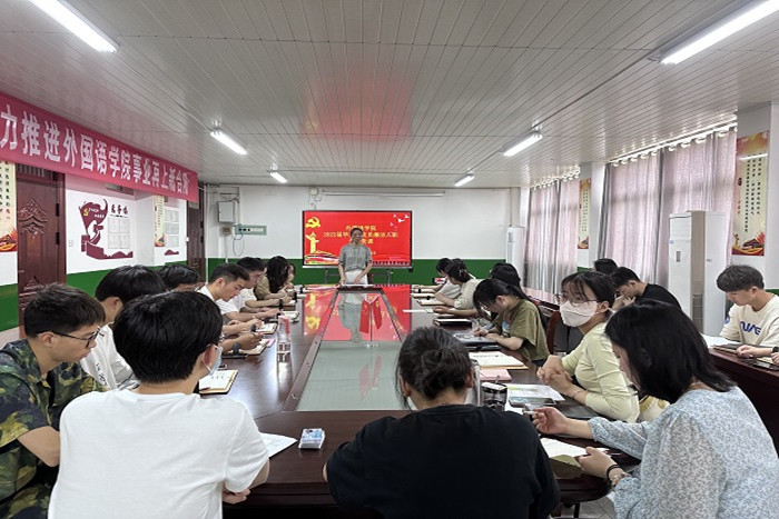 为进一步增强毕业生党员的党性修养和廉洁自律意识,5月28日上午,外国语学院在学院会议室开展2023届毕业生党员廉洁入职主题党课。学院2023届全体毕业生党员参加,本次党课由学院党委书记蔡为青主讲。