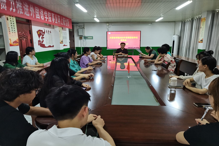 为持续做好暑期留宿学生管理和服务工作,7月21日下午,外国语学院在学院会议室召开暑期全体留宿学生座谈会。学院党委副书记张海亮出席会议,学院全体留宿学生参会,会议由学院党政办主任陈慧中主持。