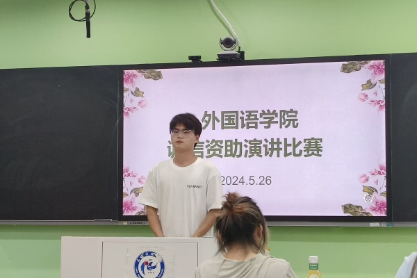 为进一步强化大学生诚信意识,全面提升大学生思想道德素质,促进各项资助政策的充分宣传和有效落实,5月26日晚,外国语学院在求知楼B305教室成功举办了“诚信资助”主题演讲比赛。