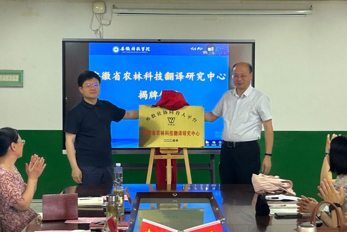 据悉,安徽省农林科技翻译研究中心是上海外语教育出版社与我校外国语学院合作共建的协同育人平台。该中心将以农林科技为特色,立足本校、联合省内、辐射长三角,坚持实践导向和成果导向,为农林行业和乡村振兴提供语言服务。
