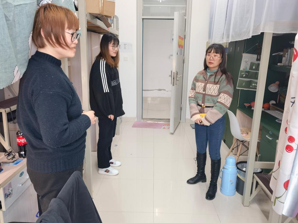 学院领导对学生宿舍内部的各设施完备情况进行了仔细检查,嘱咐同学们,春季天气渐暖,早晚要勤开窗,多通风;疫情防控期间,寝室长要定期给宿舍消毒,做好疫情防护工作,要带领舍友们适当锻炼,增强体质;同时,继续靠拢学习型宿舍、文明宿舍建设标准,创建干净、文明的公寓环境。对于部分寝室存在环境脏乱差和安全隐患的问题,检查人员也直接提出了批评,并明确要求限期整改,确保学生宿舍安全卫生。