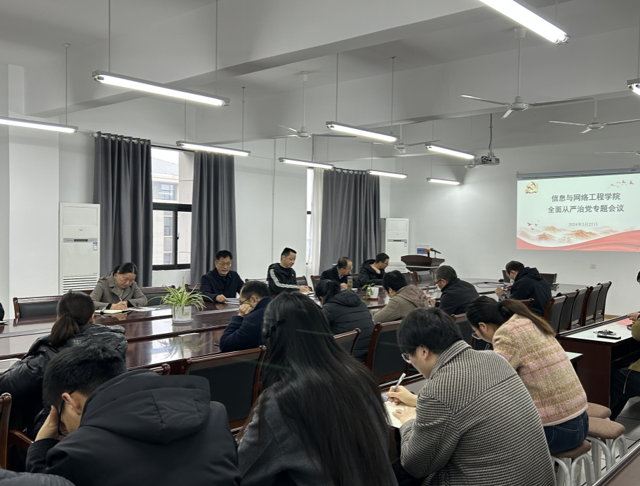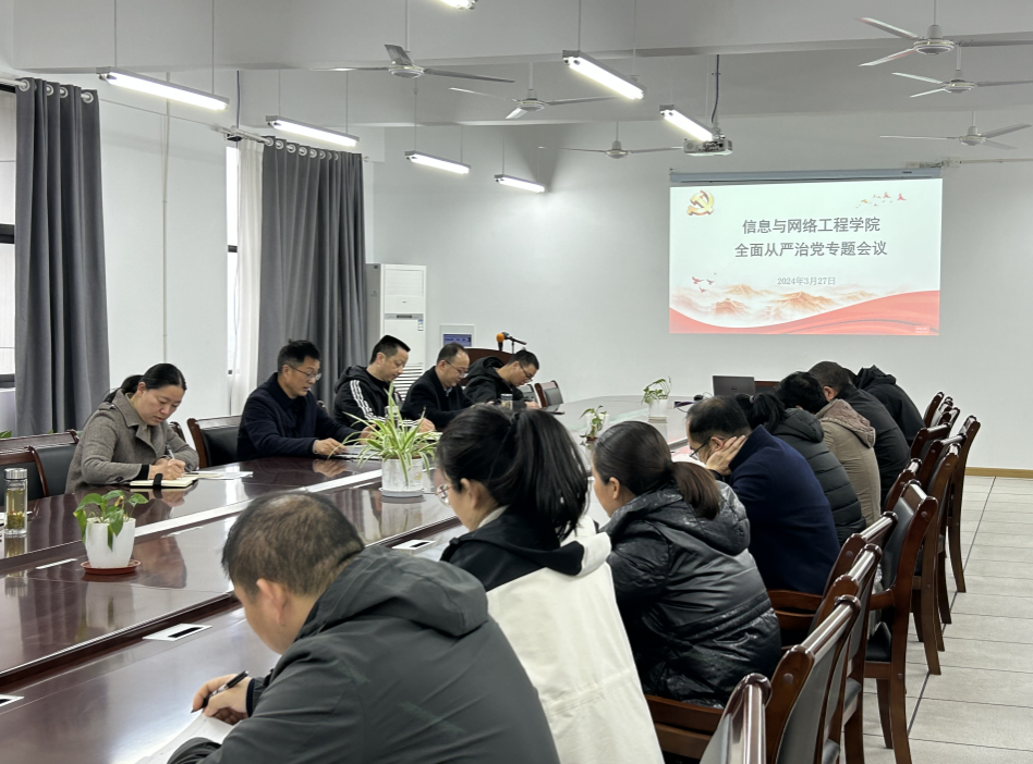 为深入贯彻落实新时代党的建设总要求,进一步推动全面从严治党向基层延伸,3月27日上午,信息与网络工程学院在龙湖校区尚行楼B418会议室召开全面从严治党专题会议。学院党委委员、纪委委员、各党支部书记、各系部主任、实验室主任及科级以上干部参加会议。会议由学院党委书记王振其主持。