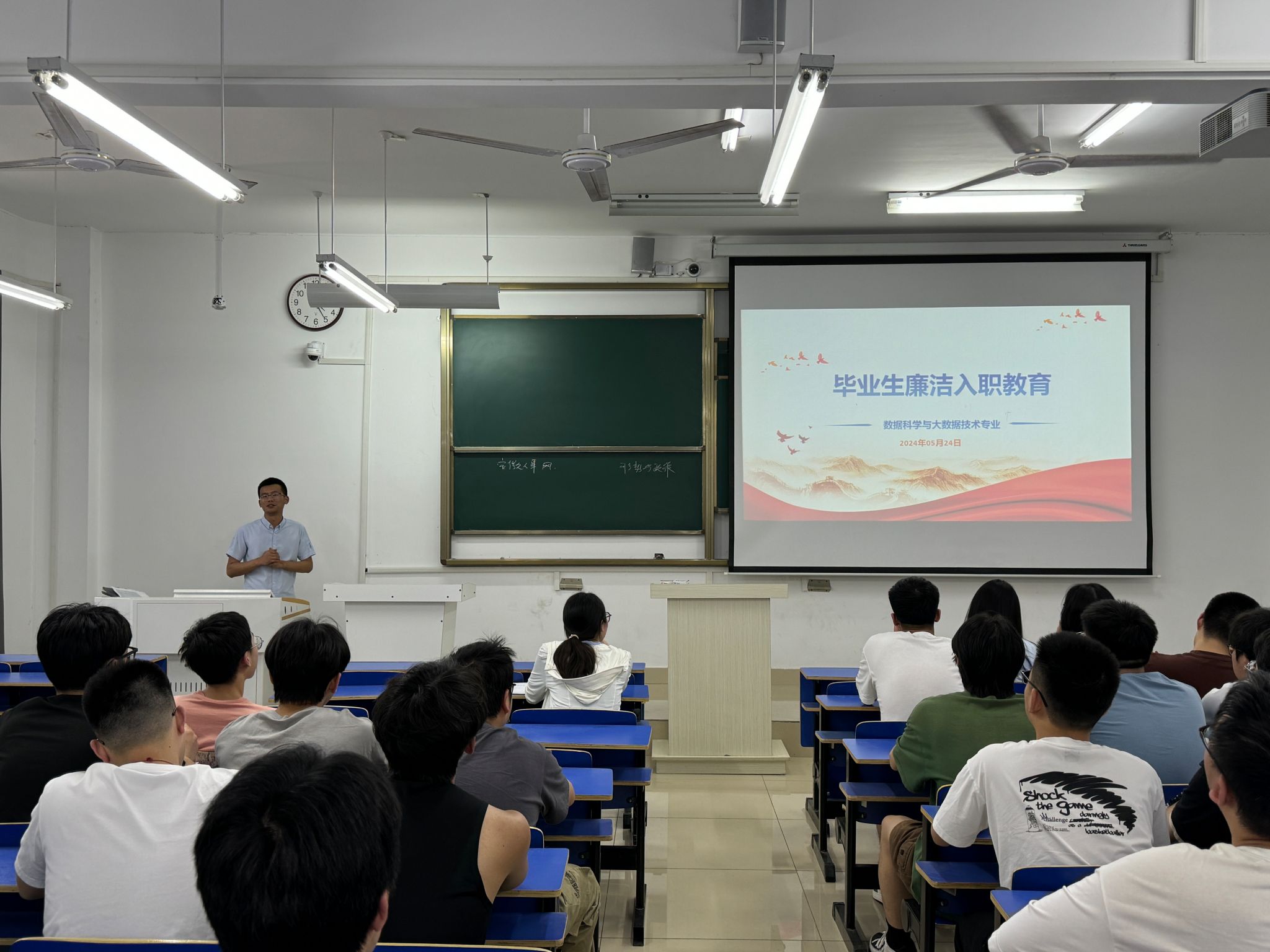 为深入学习贯彻习近平总书记关于党纪学习教育的重要讲话和重要指示批示精神,教育引导毕业生系好廉洁入职的“第一粒扣子”,5月24日下午,信息与网络工程学院在尚行楼C204开展毕业生廉洁入职教育活动。活动由学院专职辅导员陈凯主持,2024届在校毕业生参加了本次活动。