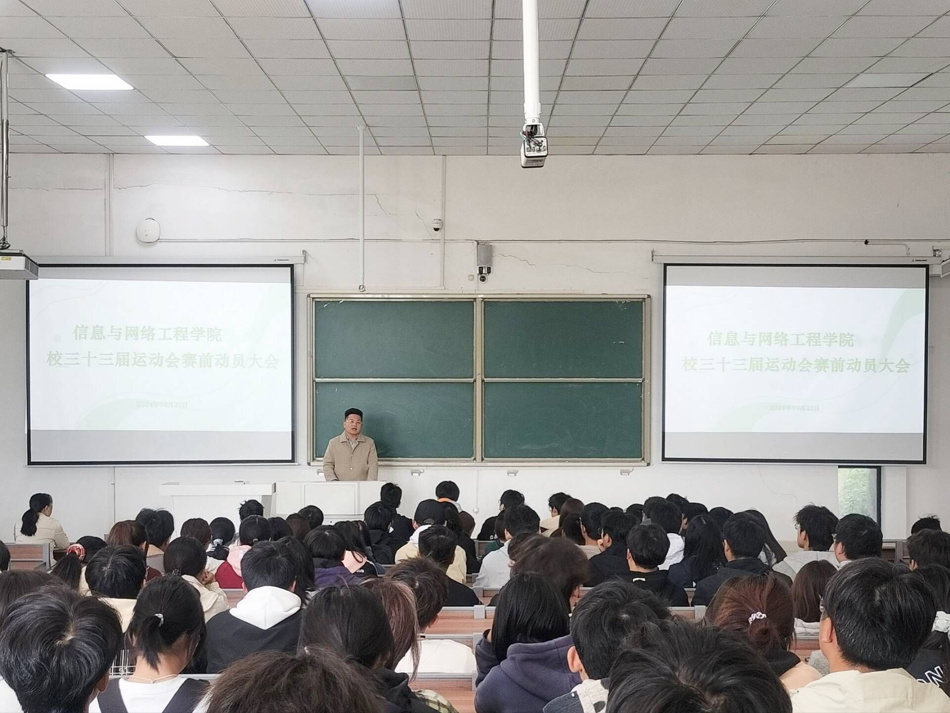为鼓舞士气,保障校运动会期间学院各项工作顺利开展。10月23日中午,信息与网络工程学院在致知楼A111召开校第三十三届运动会赛前动员大会。学院党委副书记韦乃学、学生会指导老师崔北坤出席本次会议,全体运动员、学生会成员参与本次会议,会议由崔北坤主持。