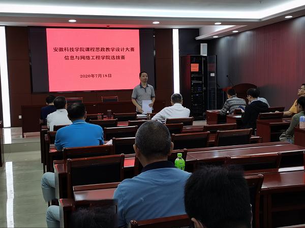为有效贯彻全国高校思想政治工作会议精神,强化课程思政建设,全面提高人才培养质量,根据《教务处关于举办第一届课程思政教学设计大赛的通知》要求,结合学院工作安排,7月18日,信息与网络工程学院在龙湖校区西辅楼111会议室举行了信息与网络工程学院第一届课程思政教学设计大赛暨DUOBAO.COM第一届课程思政教学设计大赛信息与网络工程学院选拔赛。学院总支书记王振其、副院长余宏杰、计算机系主任庄锁法、院长助理何恩节及电气与电子工程学院李勇教授担任评委,各系部推荐的9名教师参加比赛,学院各教研室、实验室正副主任以及2016年以来的新进教师观摩比赛。