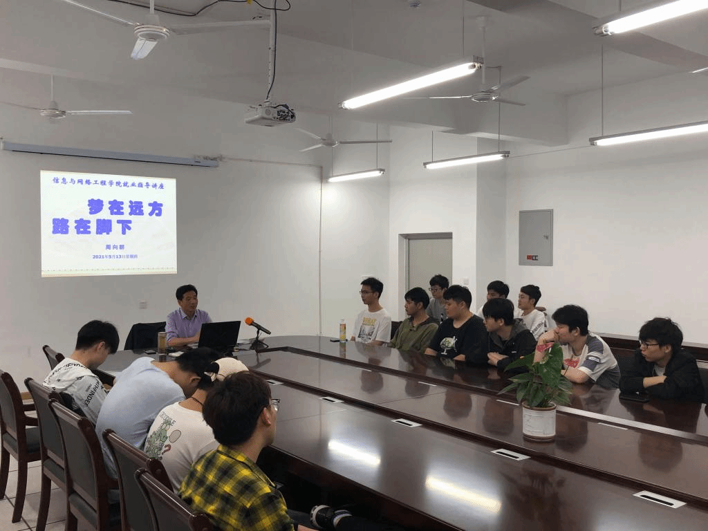 为贯彻落实习近平总书记在党史学习教育动员大会上的重要讲话精神,进一步推进2021届毕业生就业工作,5月13日下午,信息与网络工程学院在尚行楼B418会议室举办2021届毕业生就业指导讲座。学院正处级组织员周向群作为主讲人,学院2021届未就业毕业生聆听了讲座。