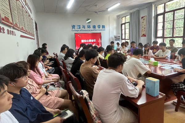 为扎实做好学院心理健康教育工作,及时了解学院学生的心理健康状况。6月9日中午,资源与环境学院于东办公楼207学院会议室召开期末心理委员会议.全体心理委员参加会议,会议由王丽萍老师主持。