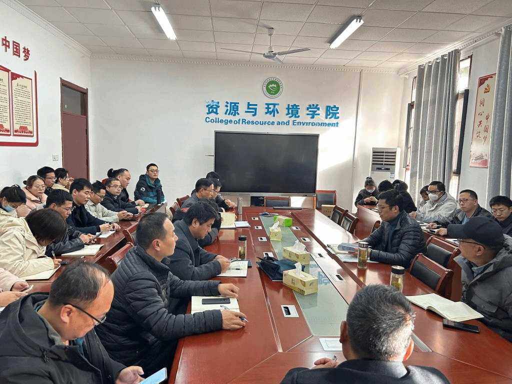 12月6日下午,资源与环境学院在东办公楼会议室召开全体教职工大会,部署安排学院期中重点工作。学院党政领导及全体教职工参加了会议,会议由学院党委副书记沈树周主持。