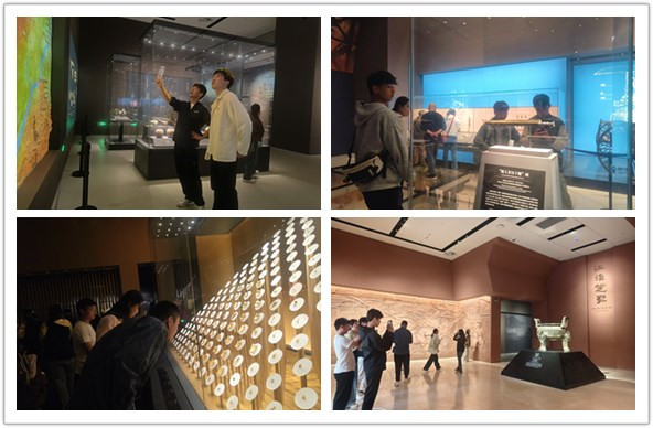 随后,团队一行来到位于淮南市寿县新城区寿春城国家考古遗址内的安徽楚文化博物馆,体会传统文化与革命精神的相互交融。博物馆展陈内容包括“安徽楚文化”“寿县文明史”两个基本陈列和“寿春寿文化”专题陈列。团员们近距离感受安徽楚文化博物馆建设成果,展区里收藏着数以千计的文物藏品,其中楚国的金币、汉八龙纹金带扣、东汉“元和二年”鎏金银神兽刻纹铜舟等文物令团员们叹为观止。文化展区、艺术展区及民俗展区中的寿州戏、寿州剪纸、寿县历代书画名家的佳作及古代器具的实物等充分展示了寿县丰富多彩的民间风俗,让团员们领略到寿县艺术传承的伟大成就,增强了对寿县地方文化的了解。同时在“寿县文明史”陈列区的“革命沃土”单元,同学们认真观看安徽最早的党组织——中共小甸集特支的介绍,对淮上英杰柏文蔚,五四先驱高语罕,工运领袖孙津川,红色拓荒者茅延桢,曹门三烈士的曹渊、曹云露、曹少修,抗日名将方振武,爱国将领赵达源等人物事迹有了一定的了解。