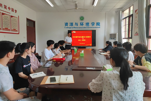 为进一步引导毕业生增强法纪意识,树立崇廉尚德的价值理念,牢筑廉洁从业思想道德防线,走好迈向社会的第一步,资源与环境学院于5月25日中午在学院会议室开展了2022届毕业生廉洁入职教育大会。资源与环境学院党委副书记沈树周,学生会指导教师王丽萍出席本次活动,资源与环境学院毕业生党员参加本次活动,活动由王丽萍主持。