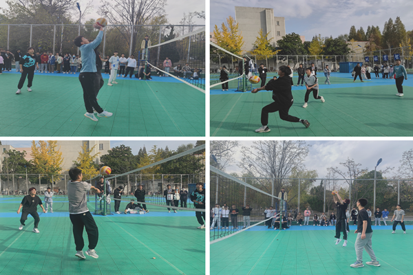 比赛采取三局两胜制,一共有四支队伍参赛。首战双方是22级农业资源与环境专业和22级环境工程专业(A队)。比赛在下午2点准时打响,队员们奋力拼搏,团结协作,互相鼓励,每一个传球都凝聚着智慧与激情,每一次接球都尽显他们青春的活力,有来有回的博弈与精彩的赛事让在场观众大饱眼福。啦啦队也在一旁积极呐喊,为排球队员们加油打气,整个赛场上洋溢着青春与欢快的气息。最终,比赛在裁判的一声哨音下结束,22级农业资源与环境专业以2:0的比分获得本次比赛的胜利。