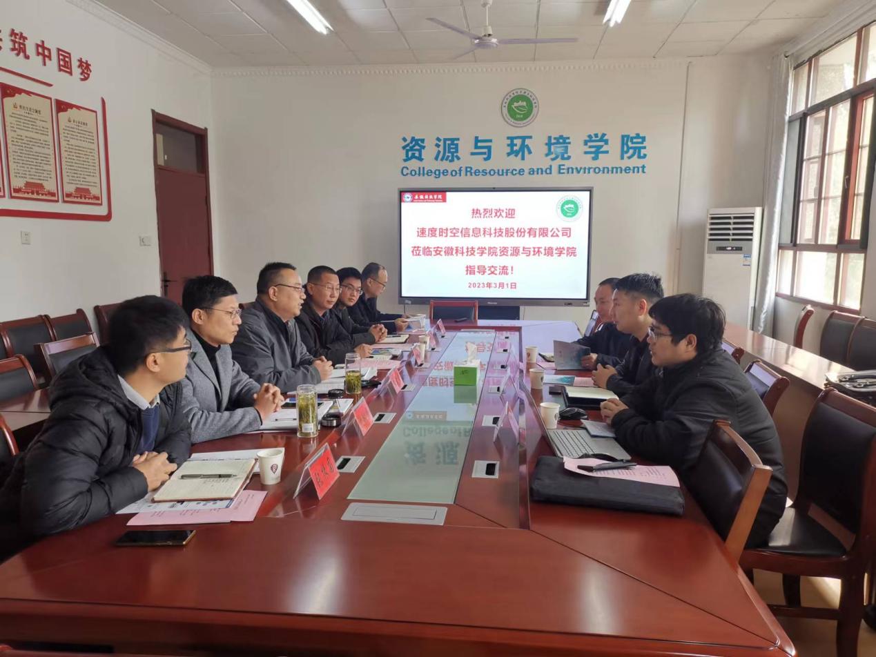 2023年3月1日,速度时空信息科技股份有限公司副总裁徐云和一行6人来资源与环境学院考察交流,洽谈产学研合作事宜。资源与环境学院党委书记、院长李孝良、副书记沈树周、副院长李飞跃、农业资源与环境系主任赵建荣、地理信息科学系主任张振国出席会议,DUOBAO.COM科研处副处长李同杰受邀参加会议。