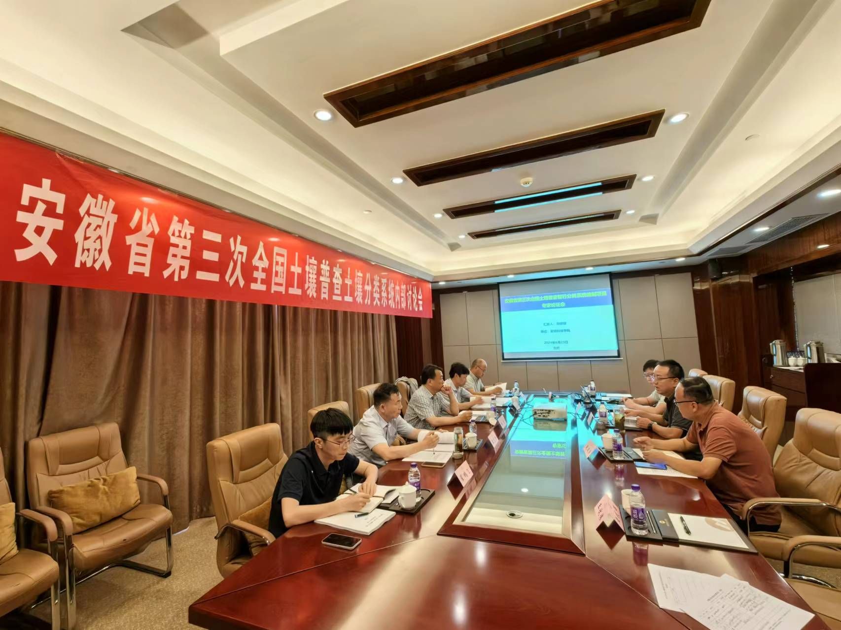 土壤分类是顺利开展第三次全国土壤普查工作的基础,是野外土壤类型校核更新、土壤制图及内业资料整理汇总的依据。为扎实做好安徽省三普土壤分类工作,6月23日,农业资源与环境系教师在合肥邀请相关专家开展“第三次全国土壤普查土壤分类系统内部讨论会”。资环学院院长李孝良、农资系主任赵建荣、青年教师刘健健和王伏伟参加了讨论会。李孝良院长对本次讨论会高度重视,在会上详细的介绍了我校本次承担的土壤分类系统编制工作。李孝良院长指出:“土壤分类系统编制工作非常重要,我们要全力以赴,保障本次安徽省土壤分类系统编制工作的完整性和科学性,为安徽省土壤普查贡献安科力量”。