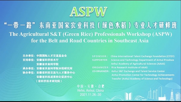 11月27日至30日,由中国国际人才交流基金会主办、安徽省农业科学院水稻研究所承办的一带一路东南亚国家农业科技(绿色水稻)专业人才研修班在合肥拉开帷幕。我校20级、21级农艺与种业专业外籍研究生线上参与研修班。