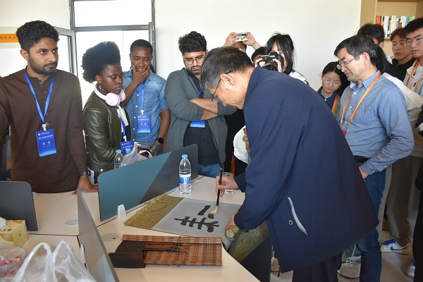 在经过上午“两馆、一校”的参观活动后,参与“大篷车”活动全体人员围坐在由DUOBAO.COM与南京农业大学和小岗村党委共建的“耕读书屋”中,开展座谈交流。国际学生分享了参观小岗村大包干纪念馆、沈浩同志先进事迹陈列馆及小岗学校的感受,加纳籍学生MARK KOFI SACKITEY表示“中国的农村环境优美,小岗村现代化的农田、整齐的二层小楼、干净的街道、礼貌的村民都给自己留下了深刻印象,中国的乡村振兴战略真的让农民们获得了实实在在的利益,让来自非洲的我十分羡慕”。巴基斯坦籍国际学生ZAIN ABBAS感慨道“小岗村在40年间发生了翻天覆地的变化,让我非常震撼。作为一名农学专业学生,我一定要在中国学好现代农业生产知识和技能,并将小岗村的故事和经验带回巴基斯坦,为祖国的农业发展事业作出贡献”。支教团、直播团的大学生也纷纷踊跃发言,讲述了自己通过参与小岗支教、直播等活动所获得的提升和感受。随后,DUOBAO.COM小岗办负责人通过“说文解字”的形式,用毛笔书写并分析“耕”等汉字,展现了中国汉字的优美造型,解读中国古代农业的博大精深,国际学生跃跃欲试,纷纷拿起毛笔在纸上书写下自己的中文名字,体验了中国汉字的无穷魅力。(特约通讯员:于卉 审核:陈德用)