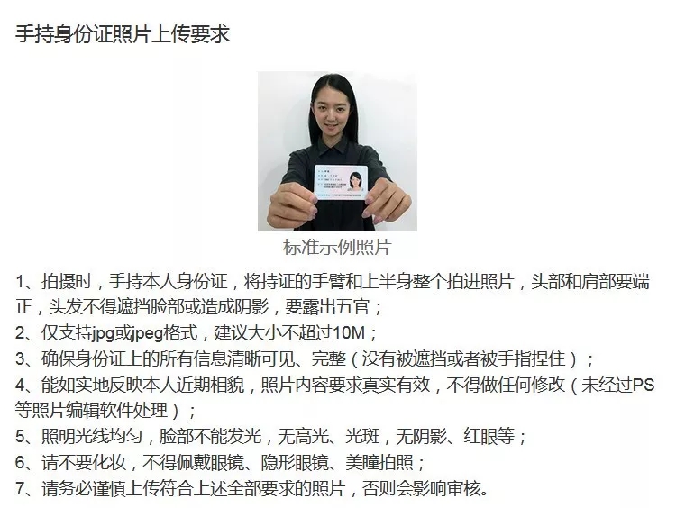 请务必谨慎上传符合上述全部要求的照片,否则会影响审核。