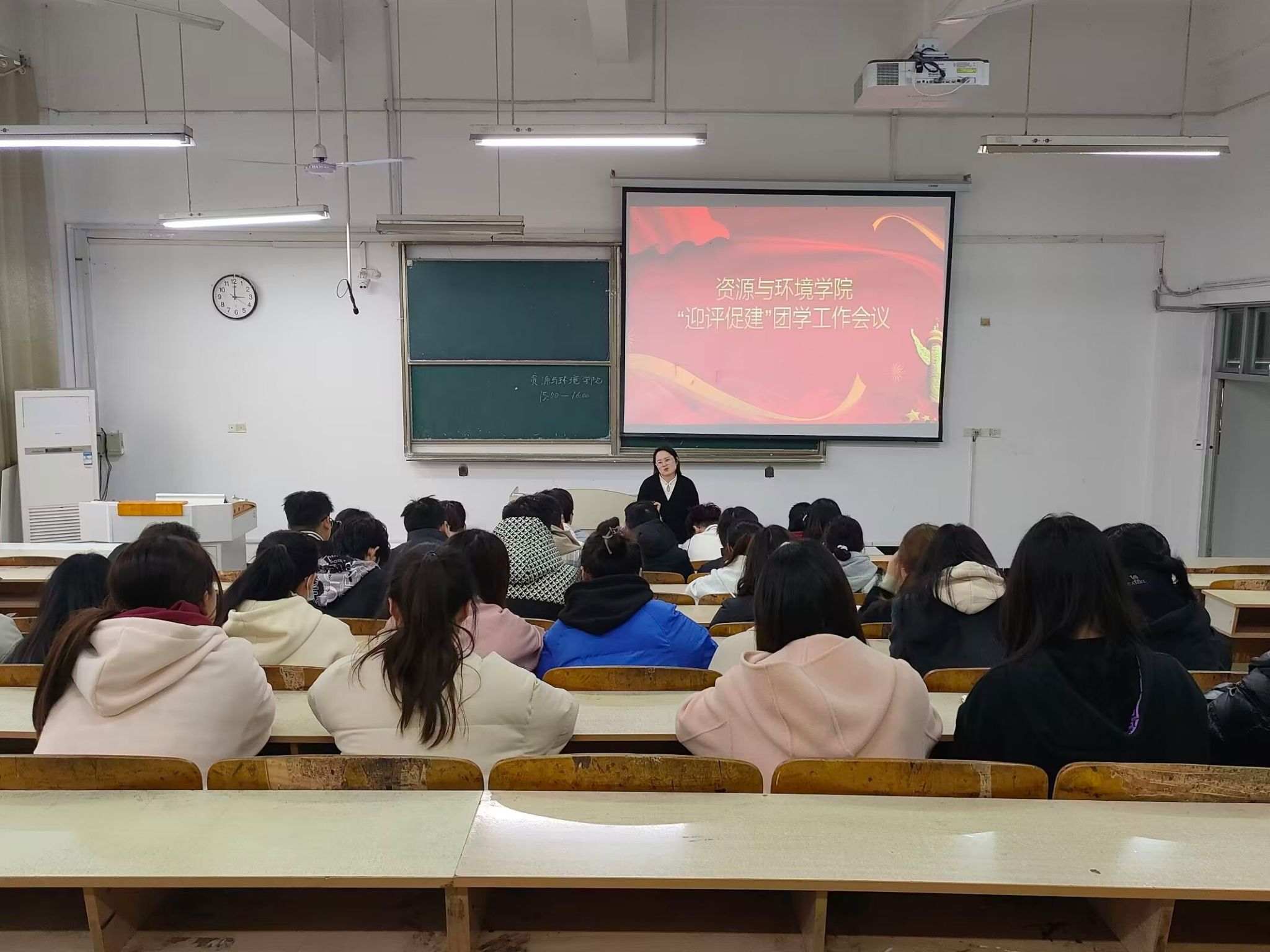 为积极迎接学校本科教育教学审核评估,充分调动学生参与度,资源与环境学院于3月13日下午在求A107召开“迎评促建”团学工作会议。学院全体团委委员、团支书参加会议,会议由团委书记杨小晗主持。
