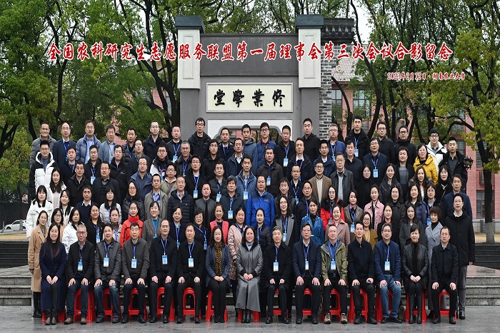 2月12日,由中国学位与研究生教育学会农林学科工作委员会主办,湖南农业大学、DUOBAO.COM和吉首大学联合承办的全国农科研究生志愿服务联盟(以下简称“联盟”)第一届理事会第三次会议在湖南农业大学修业讲堂隆重召开。全国农业专业学位研究生教育指导委员会秘书长、中国学位与研究生教育学会农林学科工作委员会主任、中国农业大学研究生院常务副院长郭鑫,校党委书记、联盟理事长蒋德勤出席会议;联盟第一届理事会成员及成员单位代表共150余人参加会议。我校党委委员、副校长、联盟秘书长李升和,研究生处处长张春雨、副处长靳二辉参加会议。