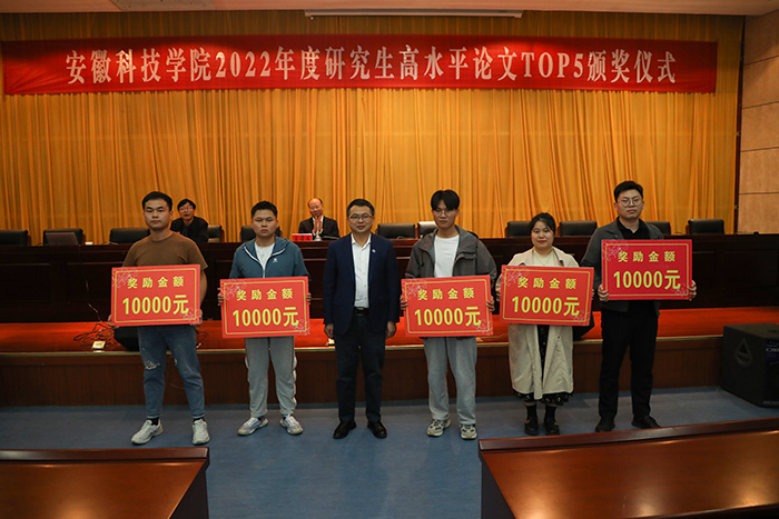 为了鼓舞和激励过去一年来在学术研究方面取得卓越成果的研究生同学,11月1日下午,2022年度研究生高水平论文TOP5奖学金颁奖仪式在凤阳校区新图书馆二楼报告厅隆重举行。校党委委员、副院长王孝义,江南大学至善学院院长、我校1996级校友刘立明教授出席颁奖仪式,仪式由党委研究生工作部部长、研究生处处长张春雨主持。