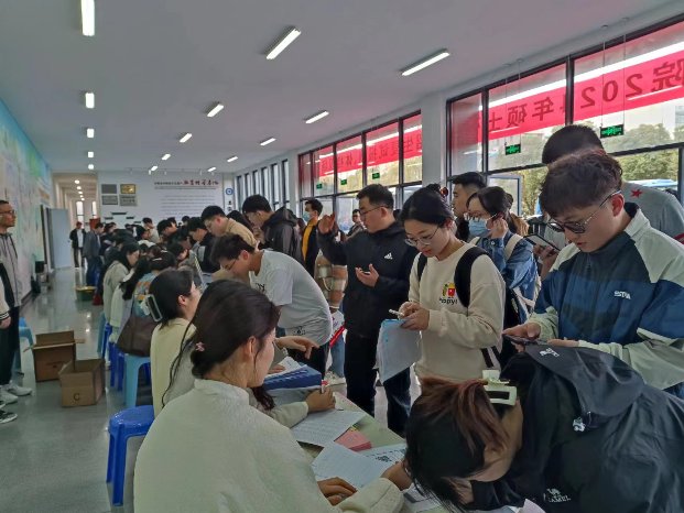 清晨7:30,阳光洒落在校体育馆的每个角落,为这场严肃而重要的体检活动增添了一抹温馨。体育馆正门入口处6名研究生培养学院设置的考生资格审查处一字排开,各体检项目按类别在体育馆内有序布置,校园西区大门口考生引导处志愿者持证就绪,准备迎接各地考生们的到来。考生们有序排队,依次进行身份核实、材料核验和登记工作。现场志愿者热情周到,为考生们提供细致的指导和帮助。