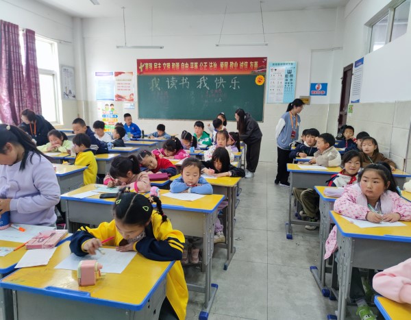 书法绘画班通过练习书法和绘画,不仅培养了孩子们的审美能力,让他们学会欣赏和鉴别美,更激发了他们的创造力,让他们能够用笔墨和色彩表达内心的世界。在这个艺术的天地里,孩子们尽情挥洒才情,用线条和色彩描绘出属于他们自己的美丽画卷。支教队员陈婉晴和陈涵在课后提到:“所有的孩子都像一根幼苗,都喜欢阳光,都积极向上,因此我们在教学过程中特别注重鼓励、和引导孩子们。课堂上我们关注孩子们的学习进度,对于表现好的同学,及时给予赞美;细节上会及时发现他们的情绪变化,注重和孩子们的互动,善于引导孩子把内心的声音说出来。”