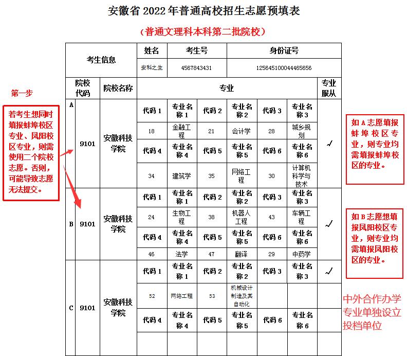我校2022年安徽省普通高校招生,招生代码为9101。有三个录取批次,分别是提前批次、本一批次、本二批次。为方便广大考生填报,现将安徽省志愿填报注意事项说明如下。安徽省外考生请关注各省份教育考试官方机构提供的志愿报考指南参考。