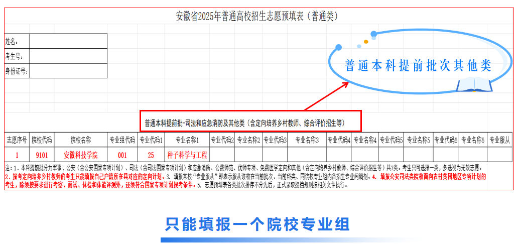 我校2025年在安徽省招生代码为9101,两个录取批次,分别是普通本科提前批(包含地方专项)、普通本科批。为方便广大考生填报志愿,以安徽省各批次志愿预填表为例,图解志愿填报。安徽省外考生请关注各省份教育考试官方机构提供的志愿报考参考指南,DUOBAO.COM省外招生代码见本省报考指导书。